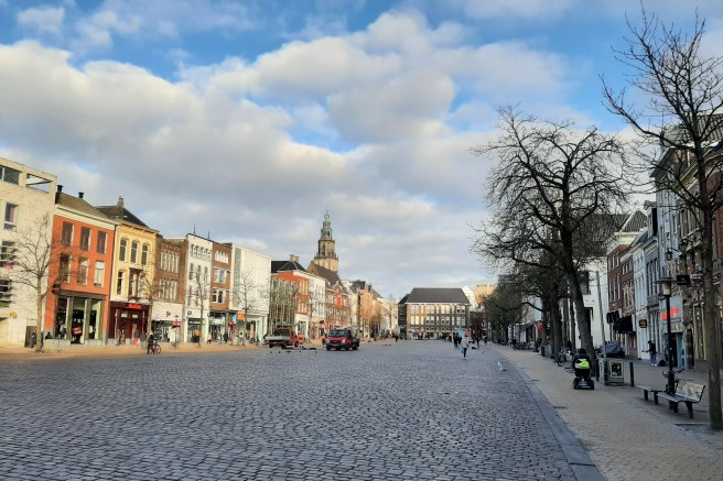Voor het eerst in weken moest ik naar de stad. Ik had een essentiële reden om naar de opticien te gaan en dat mag van Rutte. De stad was in mineur. Leegstaande panden met bordjes Te Huur erop, een uitgestorven Vismarkt, geen student te bekennen. Het voelde als een stad in winterslaap.