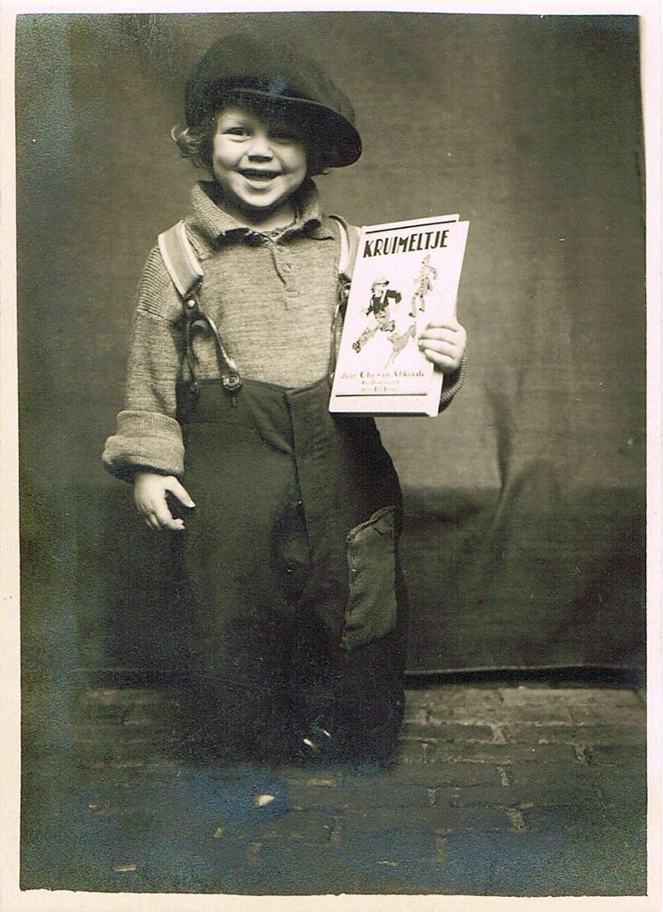 In die tijd werden meisjes nog gekleed als meisjes. In een jurkje, met een strikje in het haar en glimmend gepoetste schoentjes. Zij niet, zij is verkleed als Kruimeltje, het zwerfjongetje dat na veel tegenslagen zijn ouders terugvindt. Haar ouders waren hun tijd ver vooruit, zij hebben gezien dat er in hun dochtertje een belhamel school.