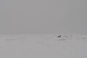 En dan opeens is ze weg. Pleite, foetsie, van de aardbodem verdwenen. We roepen, fluiten en vloeken, rennen van hot naar her, slaan doodlopende paadjes in en komen er in paniek weer uit. We zoeken een half uur, drie kwartier, een uur terwijl de sneeuw steeds harder valt. Waar is ze, in godsnaam waar is ze?