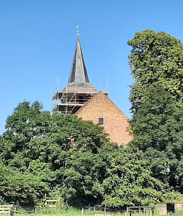 Als ik een petje op had, zou ik die voor ze afnemen. Maar ik heb geen petje op want ik ga vandaag niet naar buiten. Dus hierbij een digitaal petje af voor de hittebestendige werkers op de kerktoren.