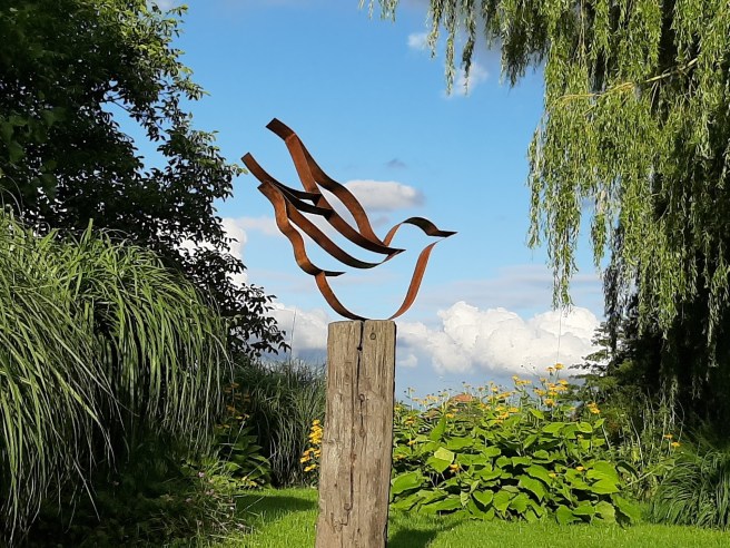 Wilt u ook een wachter in de tuin? Bezoek dan beeldentuin Eenumermaar in Zeerijp. Daar vliegen ze vrij rond.