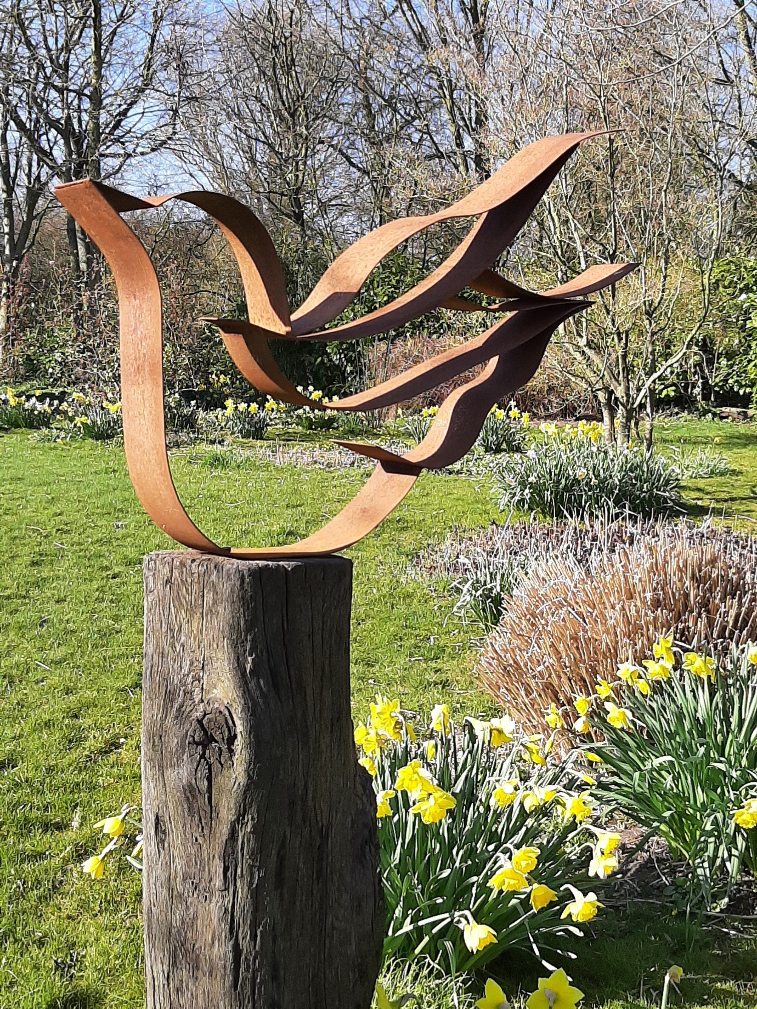 Daar staat hij dan, midden in de grote tuin. Hij kan zijn hele territorium overzien en heeft genoeg ruimte om op te stijgen en te landen.
