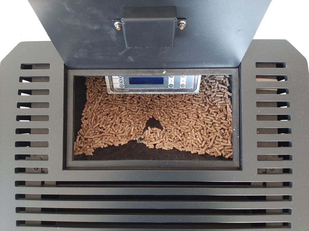 Ik had nog nooit een pelletkachel in het echt gezien. Maar in het vakantiehuisje waar ik dit weekend was stond er eentje. Als een vogel die zijn kleintjes voert, slokt het vuur de houten wurmpjes op. Elk wurmpje wordt met luid gebrom ontvangen, waarna het vuur weer knetterend oplaait. Zet je de kachel uit dan draait de ventilator nog lang door om de kachel af te koelen.